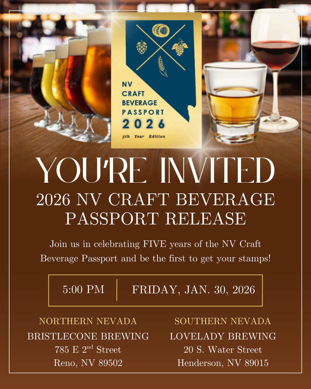 As you stamp your way through the Nevada Craft Beverage Passport, please drink responsibly. All participants must be at least 21 years of age, confirmed with a valid photo ID. Make a plan for responsibly drinking by assigning a designated driver or using a rideshare program.